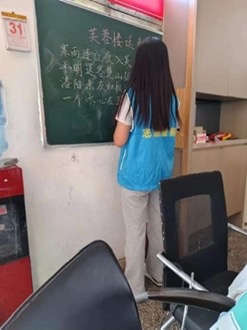 “漢語悠悠傳千載,才思灼灼傳未來。”書法課堂,墨韻飄香。首先江蘇師范大學科文學院暑期實踐團向小朋友們展現了一些中國書法之美,讓他們領略到中華傳統文化的魅力。隨后,實踐團的成員以《芙蓉樓送辛漸》為例,從握筆姿勢、筆畫粗細等方面教孩子們書寫,孩子們躍躍欲試。同時,實踐團成員為他們分發書法紙,小朋友們也靜下心來認真書寫一筆一劃,他們的字跡雖然稚嫩,但飽含朝氣。由此培養小朋友們今后都能形成良好的書寫習慣,寫一手好字,傳承中華傳統文化。