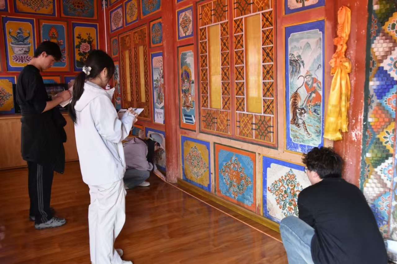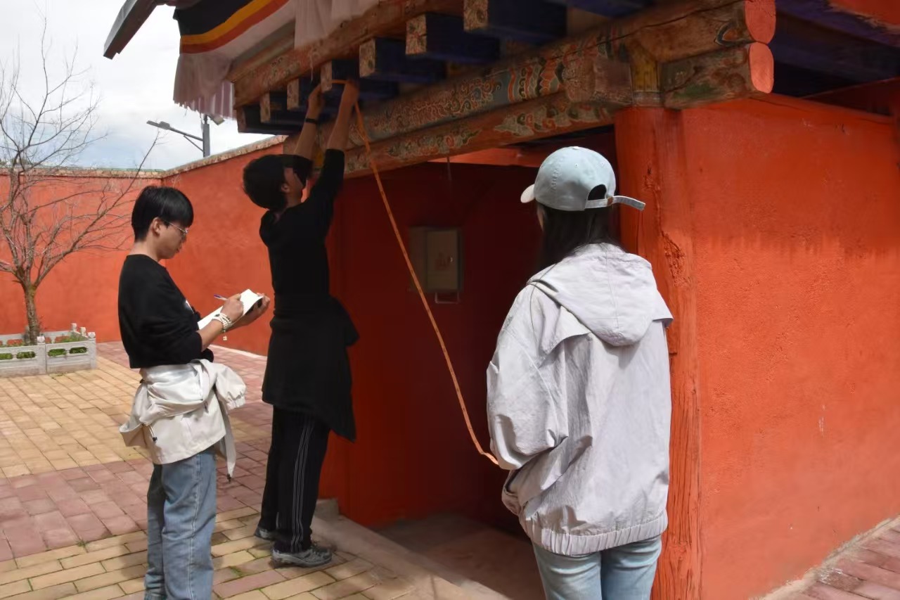 這些大學生,來自蘭州交通大學建筑與城市規劃學院“保護古建遺風,守護文脈傳承”甘南文物遺產保護團隊。在郎木寺,他們運用先進的測繪技術,對建筑的每一個細節進行精確測量和記錄,從宏偉的門樓到精致的窗欞,無不體現出他們對古建筑保護的專業精神和對當地特色建筑文化的尊重。