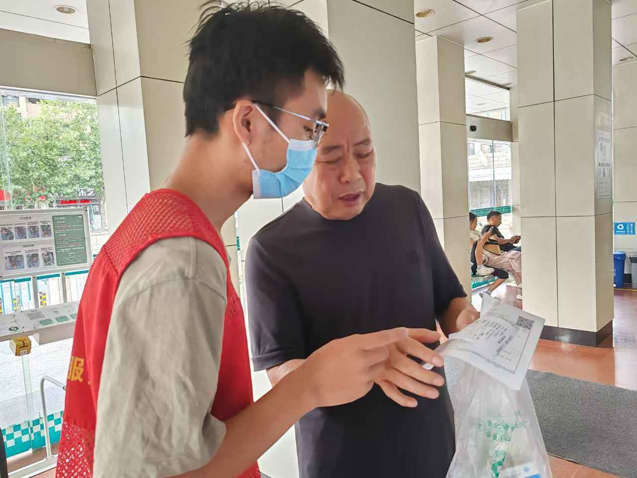 為深入實施“大醫(yī)精誠”實踐育人工程,安徽中醫(yī)藥大學(xué)校團(tuán)委在暑假期間組織開展大學(xué)生“返家鄉(xiāng)”社會實踐活動。醫(yī)學(xué)檢驗技術(shù)班返家鄉(xiāng)志愿服務(wù)團(tuán)隊于2024年8月12日前往合肥市第二人民醫(yī)院和平路院區(qū)開展了以“暑期返鄉(xiāng),醫(yī)志不渝”為主題的志愿服務(wù)活動。此次活動旨在通過服務(wù)與互動,為當(dāng)?shù)鼐用駧砬袑嵉尼t(yī)療幫助和關(guān)懷,傳播健康知識,提高居民的健康意識,同時幫助部分或需居民學(xué)習(xí)醫(yī)院看病基本流程,讓醫(yī)院自助機(jī)器使用更加廣泛,更為便民,促進(jìn)家鄉(xiāng)的醫(yī)療事業(yè)發(fā)展。
