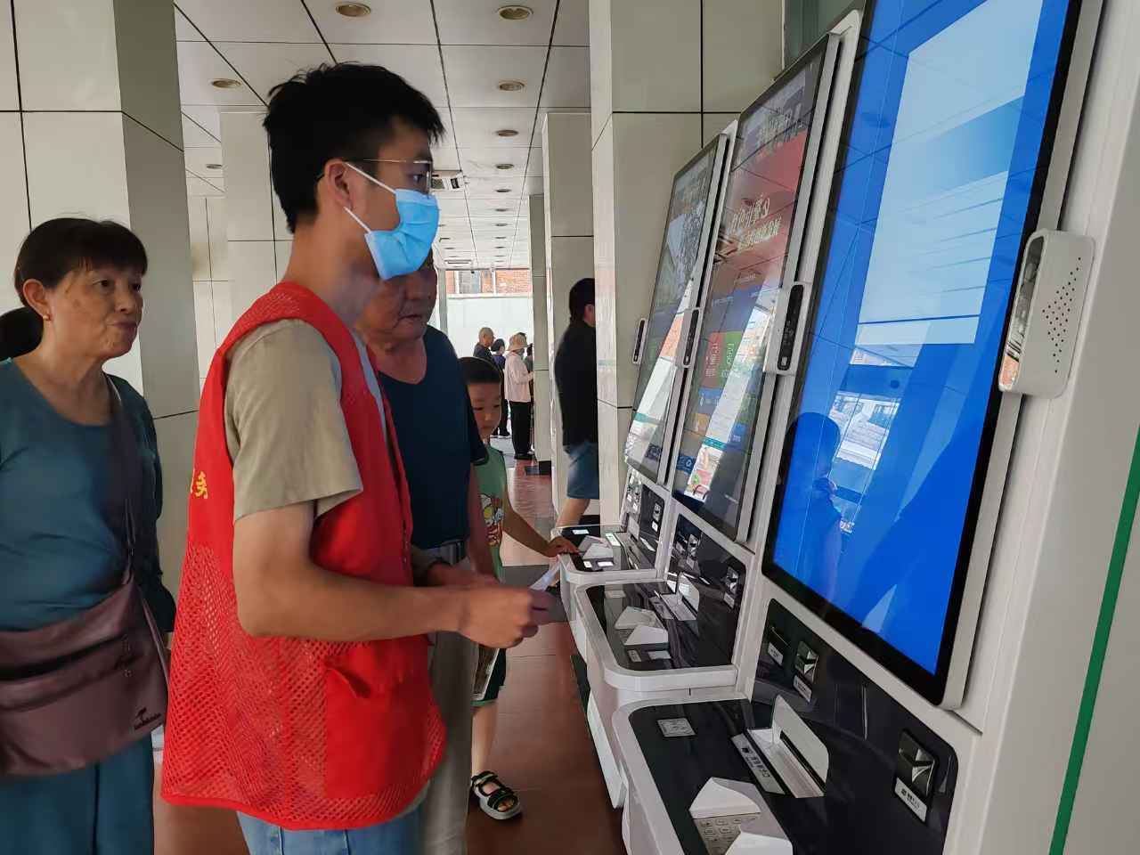 圖為志愿者指導(dǎo)患者使用智能設(shè)備打印病歷。王玉鵬攝