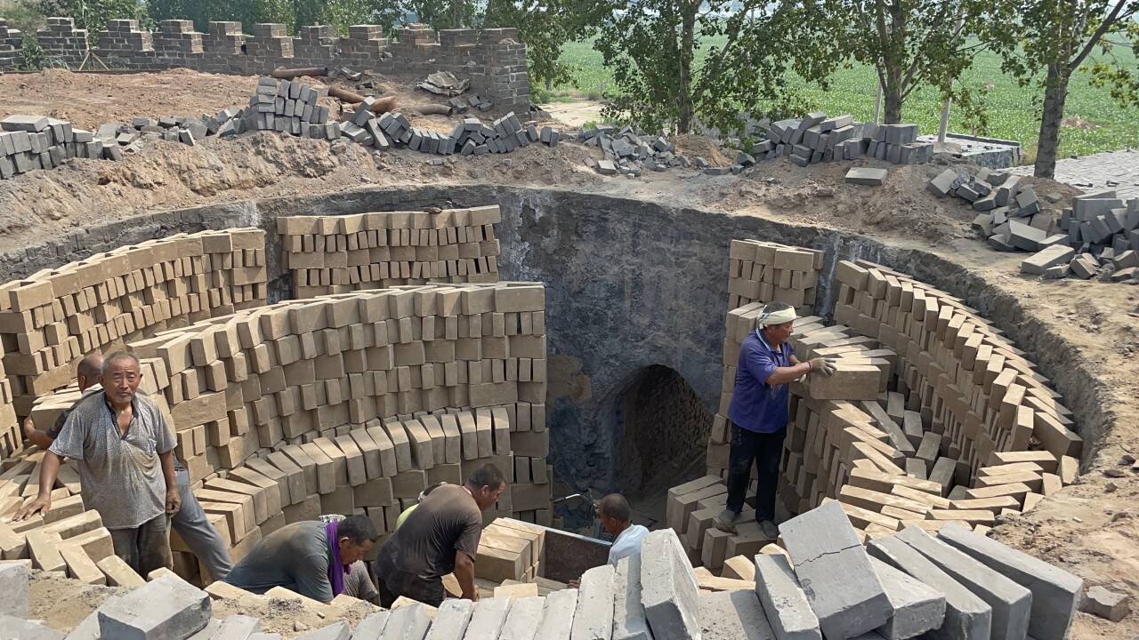 (圖為老師傅們裝窯 王靖穎供圖)