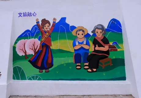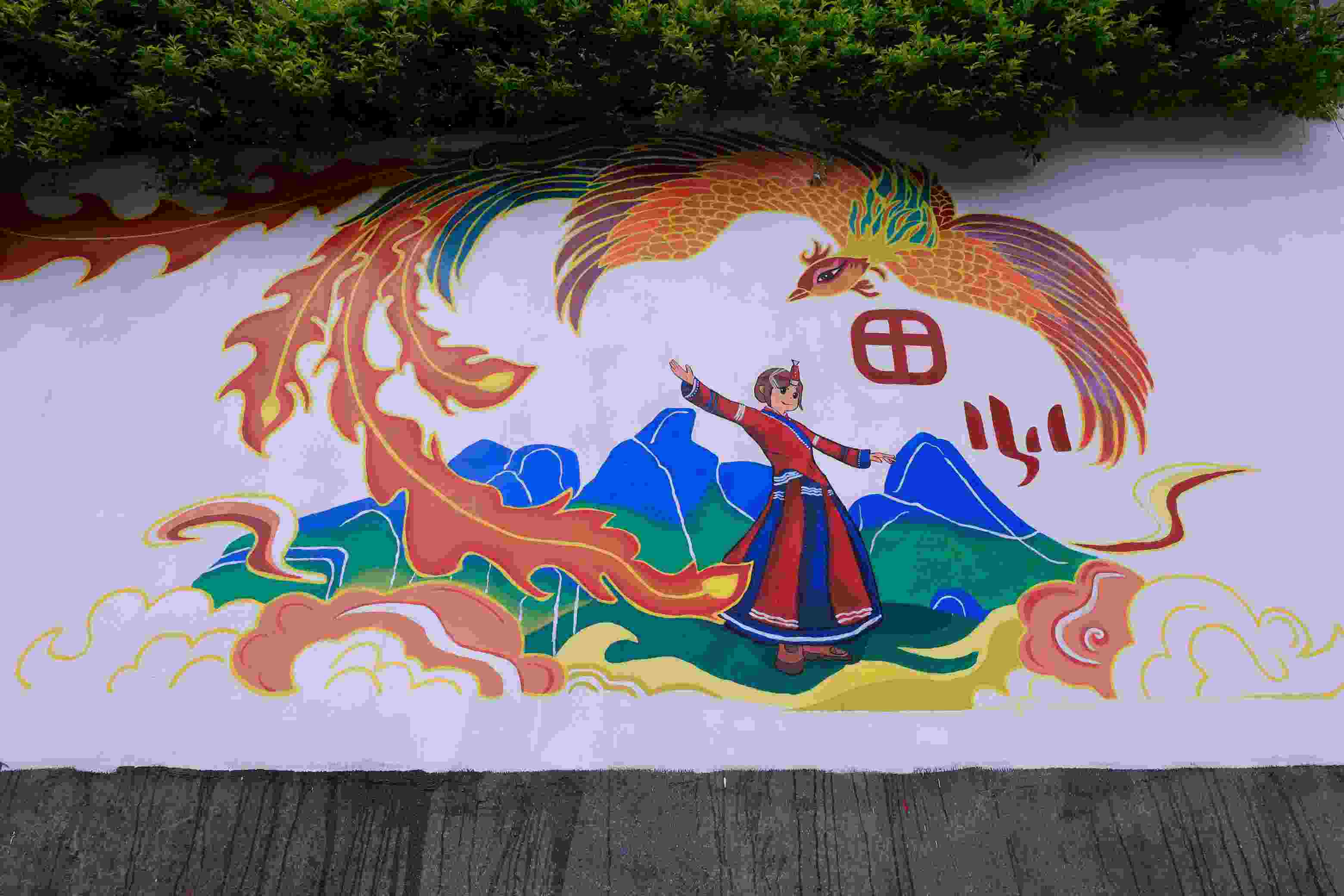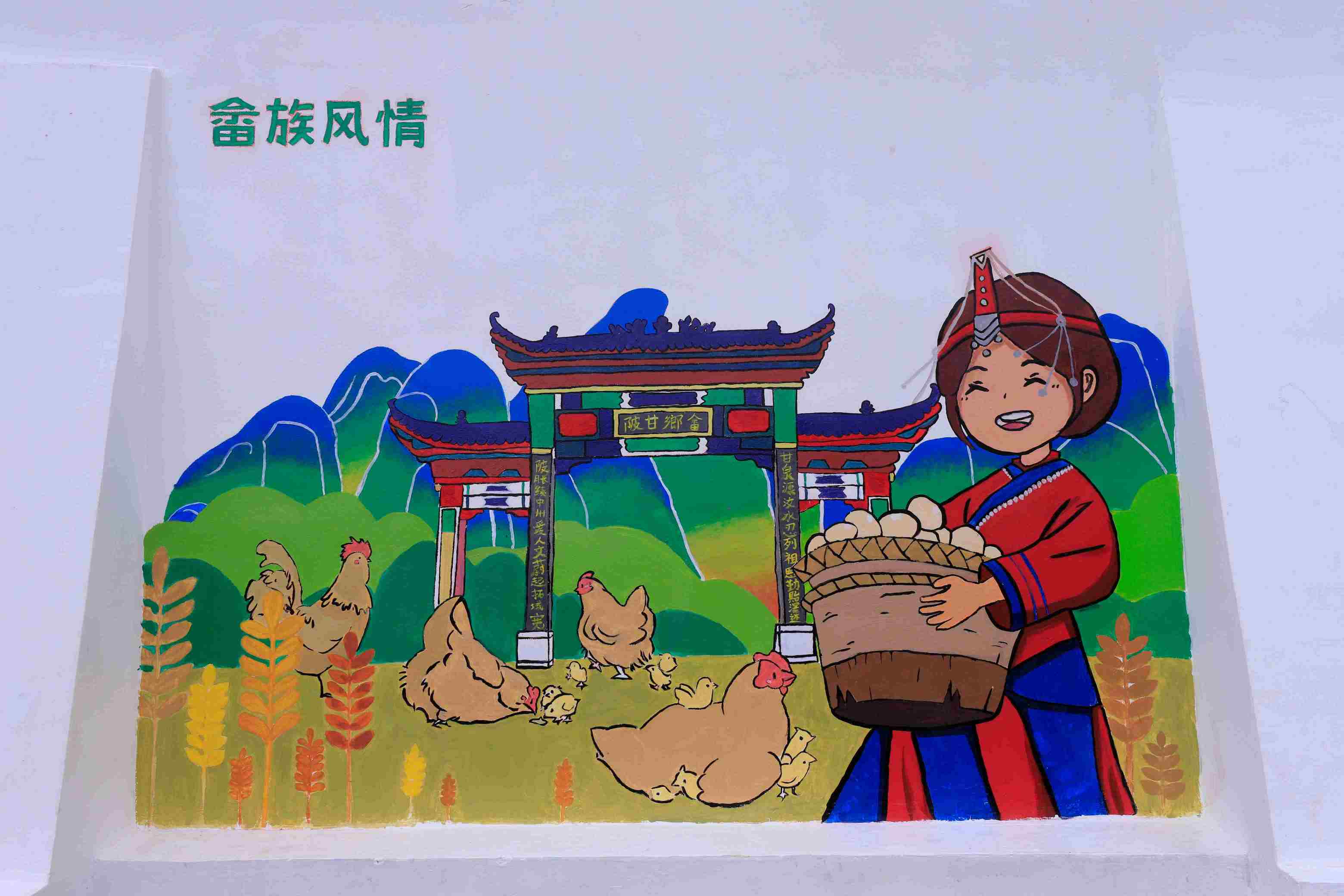 圖:體現(xiàn)畬族女孩勤勞元素墻繪作品
