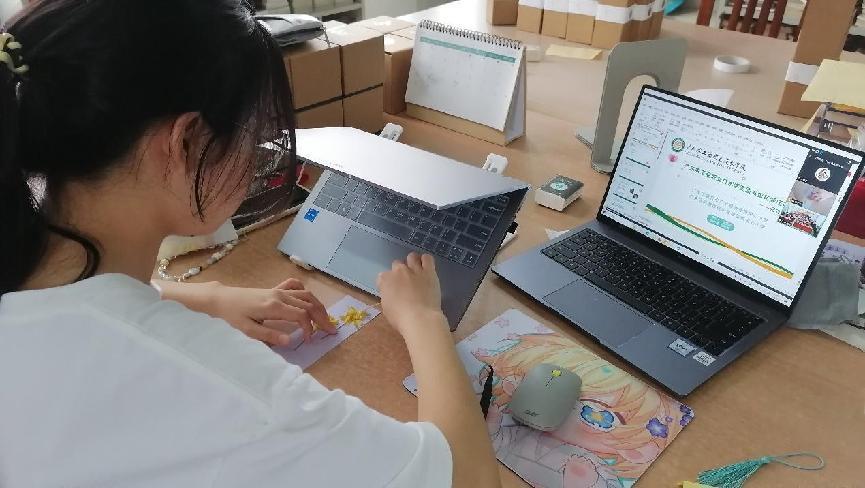 對于鄉村美育教育的探索,這不是花漾壓花社團的第一次嘗試,早在2021年底,該社團就成立了云支教隊,開始嘗試通過一臺電腦、一根網線讓優質的壓花藝術課程從廣州市“飛”入肇慶市廣寧縣洲仔鎮中心小學的課堂,云支教隊的隊員們準備好書簽、扇子、掛飾等各類壓花材料包,每周上課前寄給洲仔鎮中心小學的學生們,上課時通過網絡教授孩子們完成一件件壓花作品。2021年底至今,花漾壓花社團已經為肇慶市廣寧縣洲仔鎮中心小學、河源市連平縣忠信鎮中心小學、山東省臨沂市沂南縣磚埠鎮中心小學開展壓花藝術云支教課程120多課時,受益學生2000余人,制作壓花作品1200余件。磚埠鎮中心小學校長左振民說,這樣的活動太有意義了,我們地處偏遠的農村,美術老師又少,美術課程內容也比較單調,我們的學生通過這樣的形式學到了大城市的壓花課程,希望這樣的支教繼續堅持下去。