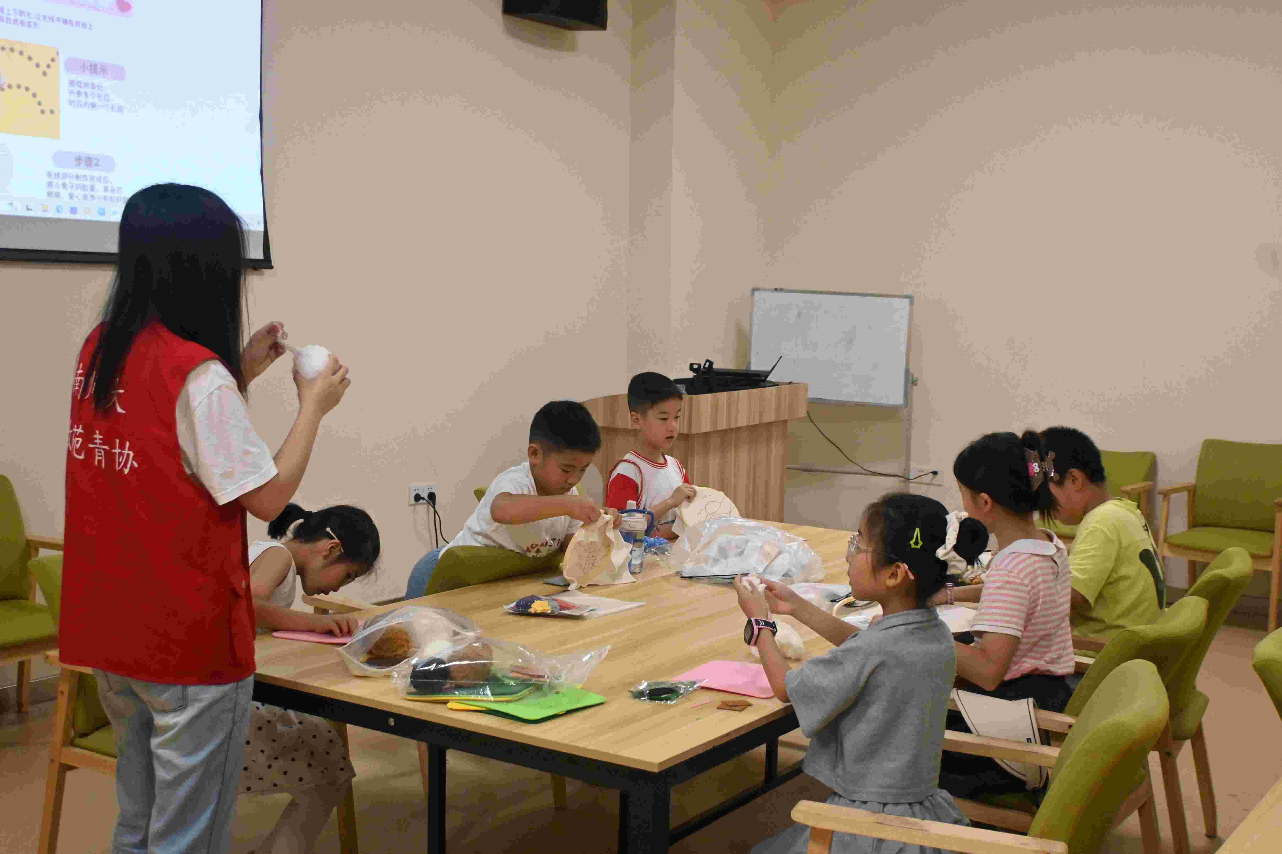 圖2為實(shí)踐團(tuán)成員給孩子們介紹手工材料。張雨晨 供圖
