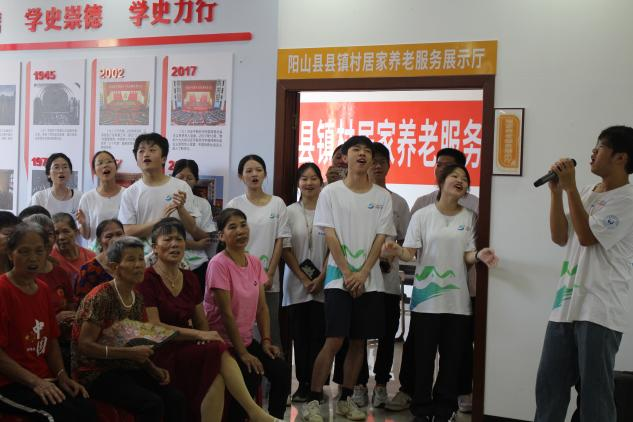 圖為實(shí)踐團(tuán)為養(yǎng)老服務(wù)中心老人們表演節(jié)目。劉向杰 供圖