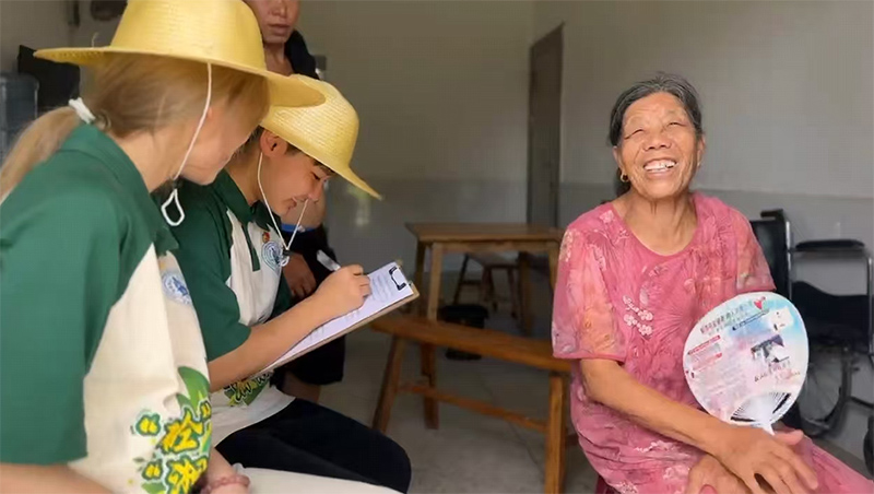 圖為實踐隊成員采訪敬老院老人。王彥偉 供圖