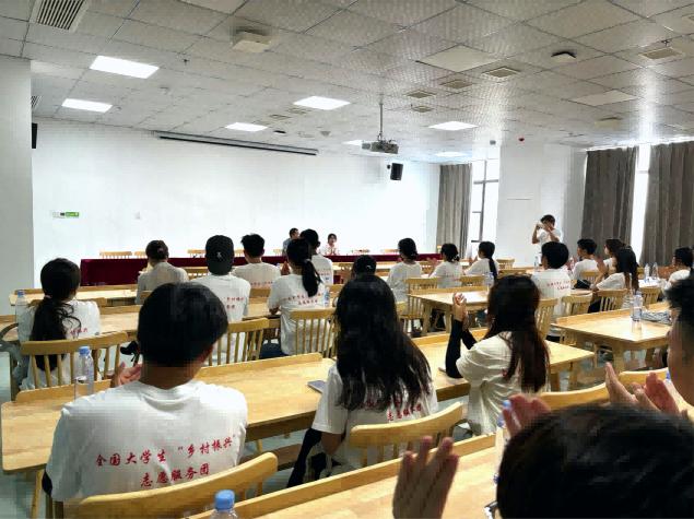 圖為中國農業發展銀行浮梁縣支行行長與實踐隊員們座談分享