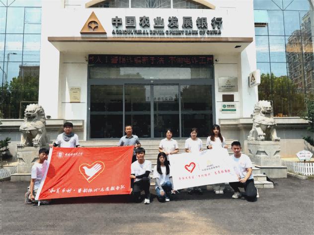 圖為實踐隊員與中國農業發展銀行浮梁縣支行行長、支行團支部書記合影