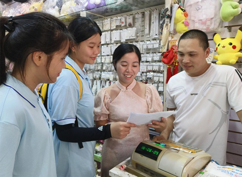 (圖為實踐隊員向當(dāng)?shù)貍鹘y(tǒng)電商介紹)張慧娜/提供