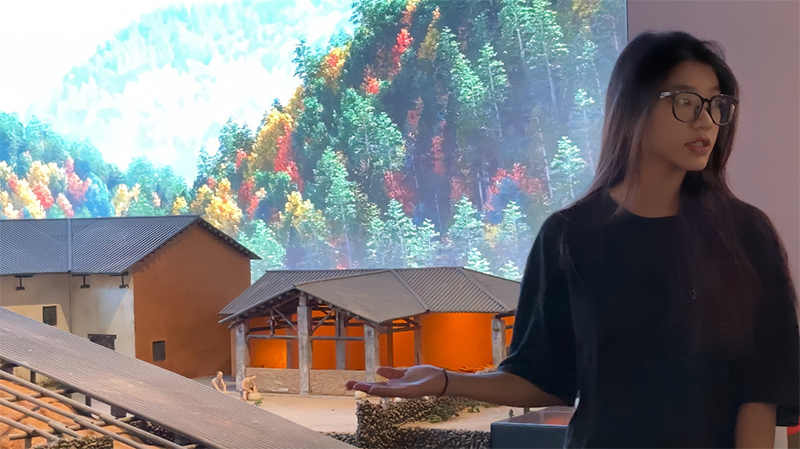 在參觀過程中,馮穎萍同學提前學習窯址相關的知識,并為大家詳細講解了溈山月形灣窯址,介紹了窯址的分布特點以及窯設計的具體含義。她生動有趣的講解,用著通俗易懂的語言將復雜的陶瓷工藝娓娓道來,讓每一位成員都能聽得懂、聽得進。在講解過程中,她還穿插了一些有趣的小故事和歷史典故,大家對陶瓷文化的了解也隨之加深。