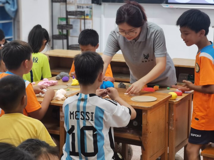 在緊張刺激的體育活動和深入淺出的知識講解之余,實踐團還為孩子們準備了豐富多彩的手工課程。從趣味粘土課、創意折紙到涂鴉飛盤,每一件作品都凝聚了孩子們的智慧與汗水。在動手實踐中,孩子們不僅學會了新技能,還培養了創新思維和動手能力,讓創意的火花在指尖綻放。