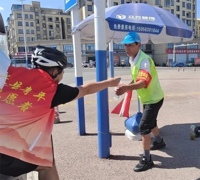 在活動期間,服務小隊作為流動冰箱小分隊,早早地來到了縣城各個取水點,取水上車,然后穿梭于城市與鄉野,為戶外工作者們送去了清涼飲料、礦泉水等等。我們還為他們送上了慰問信和感謝狀,表達了對他們辛勤付出的敬意和感謝。