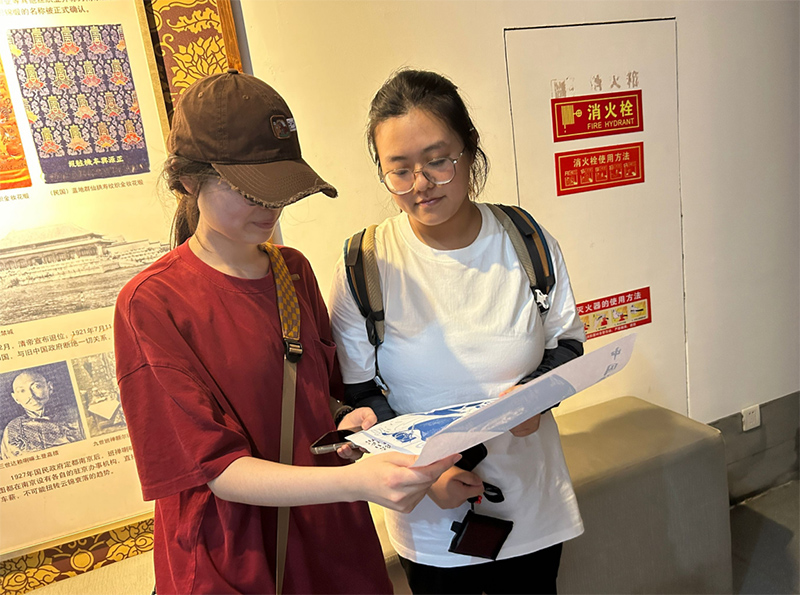 圖為實(shí)踐團(tuán)成員博物館內(nèi)進(jìn)行攔截采訪(fǎng)調(diào)研