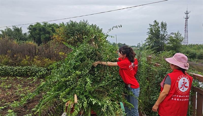 圖為團隊成員與永豐村志愿者一起做鄉村清掃。楊梓因 供圖