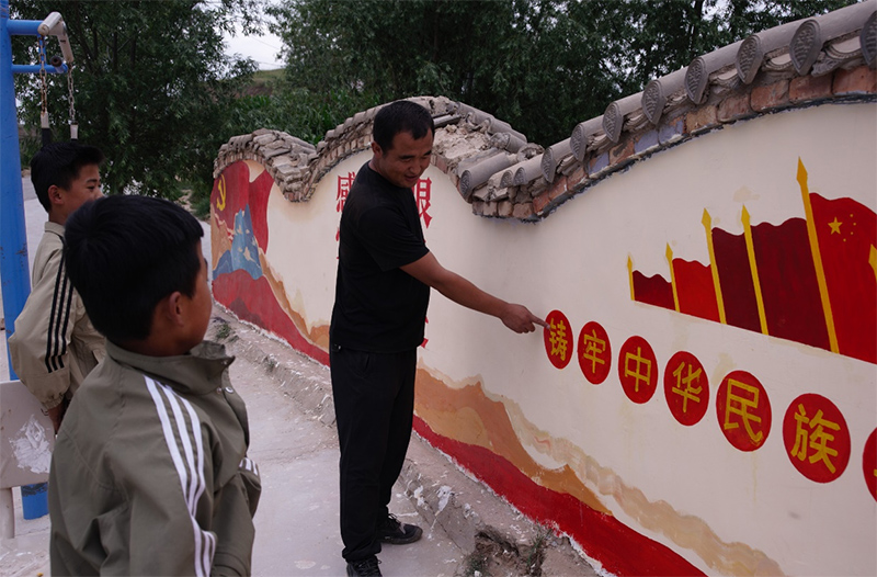 墻繪創作是一個細致且耗時的過程。學生們在白墻上一筆一筆地勾畫、涂色,將一個個人物惟妙惟肖地展現出來,將一個個風景圖畫鋪展開來。他們將民族團結象征的石榴圖案、多民族和諧共處的溫馨場景以及東鄉美麗的自然風光融入墻繪之中,讓每一面墻都成為了講述東鄉故事的生動畫卷。