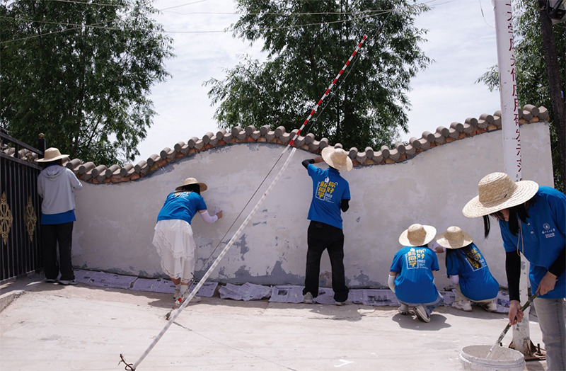 在活動開始之前,學生們首先進行了實地考察,詳細了解了村情村貌。他們與村干部和駐村干部進行了深入交流,廣泛征求了他們的意見和建議。通過反復討論,最終確定了墻繪的圖案。這些圖案不僅融合了東鄉族的文化元素和馬陰村的地理環境,還體現了民族團結的精神,突出了鄉村環境的特色。