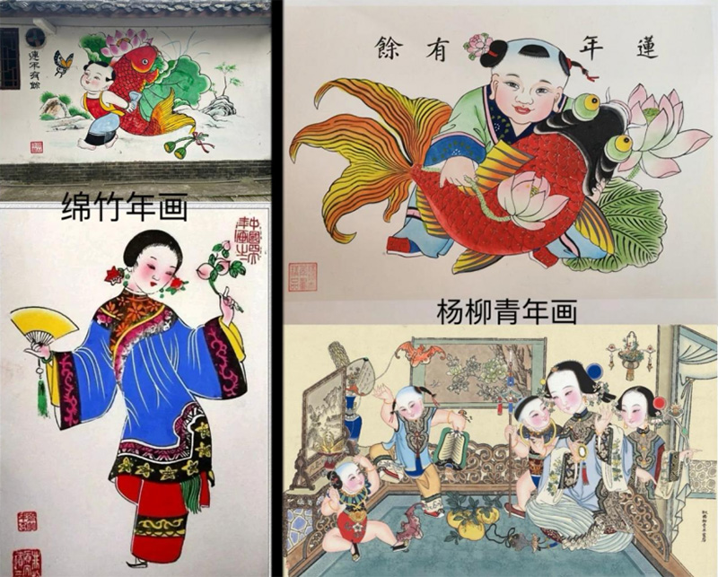 通過對比兩次實地調(diào)研,楊柳青年畫和綿竹年畫作為中國傳統(tǒng)年畫的兩大重要流派,都逐漸進行著同一種轉(zhuǎn)變:從過年時銷售張貼的年畫到如今傳承文化底蘊的載體,年畫的呈現(xiàn)不再以單一紙張作為載體,而是以傳承文化為核心,結(jié)合時代所需自我創(chuàng)新來闡釋文化內(nèi)涵。楊柳青年畫與希爾頓、OPPO等公司進行合作,將年畫元素融入公司產(chǎn)品,當(dāng)?shù)禺嬌缏?lián)合全國優(yōu)質(zhì)企業(yè)和行業(yè)大師建立“楊柳青年畫創(chuàng)意產(chǎn)業(yè)聯(lián)盟”,整合行業(yè)資源。綿竹年畫采取與鄉(xiāng)村旅游產(chǎn)業(yè)融合發(fā)展的方式進行創(chuàng)新,打造“畫境綿竹·年畫里”鄉(xiāng)村旅游綜合體,并構(gòu)建起全國年畫行業(yè)首部地方性法規(guī)——《德陽市綿竹年畫保護條例》,通過法律的安全網(wǎng)保護年畫發(fā)展。