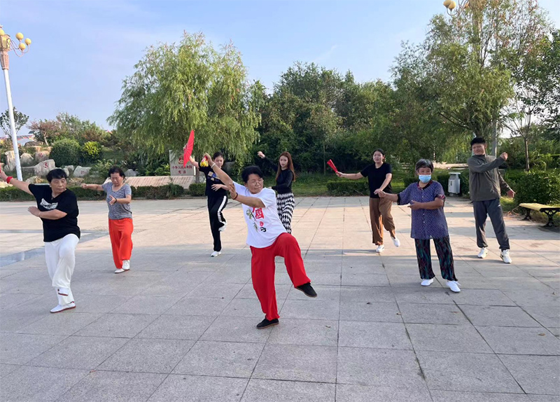 鍛煉身體,親身感受。第五、六天實踐團成員在養老院外的小廣場上與老人們一起學習舞扇,老年人通過運動可以提高身體機能,延緩衰老。