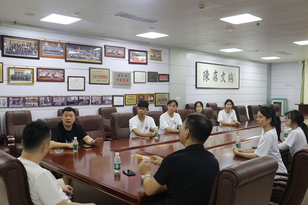 圖為青筑隊(duì)員與陳店文胸工作人員交流 供圖 鄭曉琪