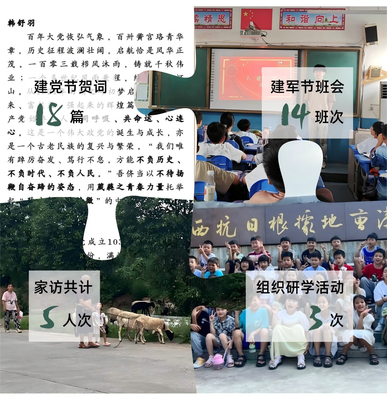 - 建軍節主題班會 為慶祝八一建軍節,支教隊為學生們精心策劃了主題班會。通過講述英雄故事、觀看紀錄片,隊友們激發學生的情感共鳴,引導學生體悟人民軍隊的偉大精神,進一步培養學生的愛國情懷與國防意識。這些豐富多彩的活動與環節,不僅豐富了支教內容,更讓支教工作充滿了溫度與深度。WHU“豫”你相遇支教隊始終秉承初心,以實際行動踐行教育使命,用光芒照亮鄉村孩子的求知之路。