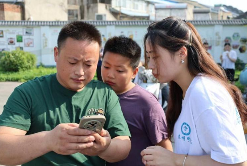 圖為“金鑰啟智”暑期社會實踐隊員為家長講解信息。李姝瑤 供圖