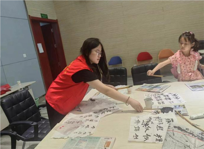 學生們發揮自己的專業優勢,幫助老師準備教學材料,教小朋友學習書法等傳統文化。他們向觀眾介紹了博物館收藏的珍貴文物和傳統文化知識,激發了公眾對傳統文化的興趣和熱愛。