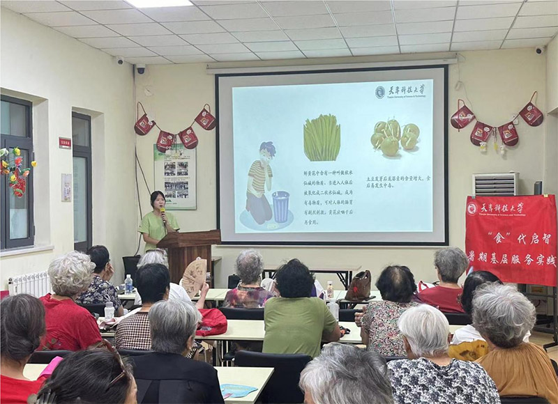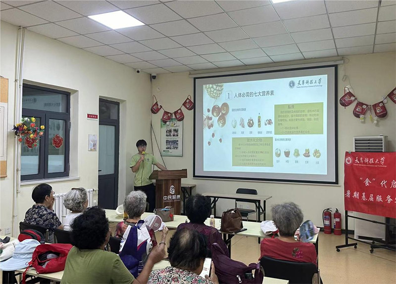 以習近平新時代中國特色社會思想為出發點,將天津作為活動中心,采取小學授課、接待訪學、宣傳路展相結合的方式深入學校、社區開展食品知識教育實踐活動。天津科技大學食品科學與工程學院“食”代啟智基層服務實踐團為了提高社區居民的健康生活,增強食品安全知識,走進社區進行“食品安全進社區食品安全科普”活動,向社區居民宣傳食品安全問題以及健康飲食的重要性。