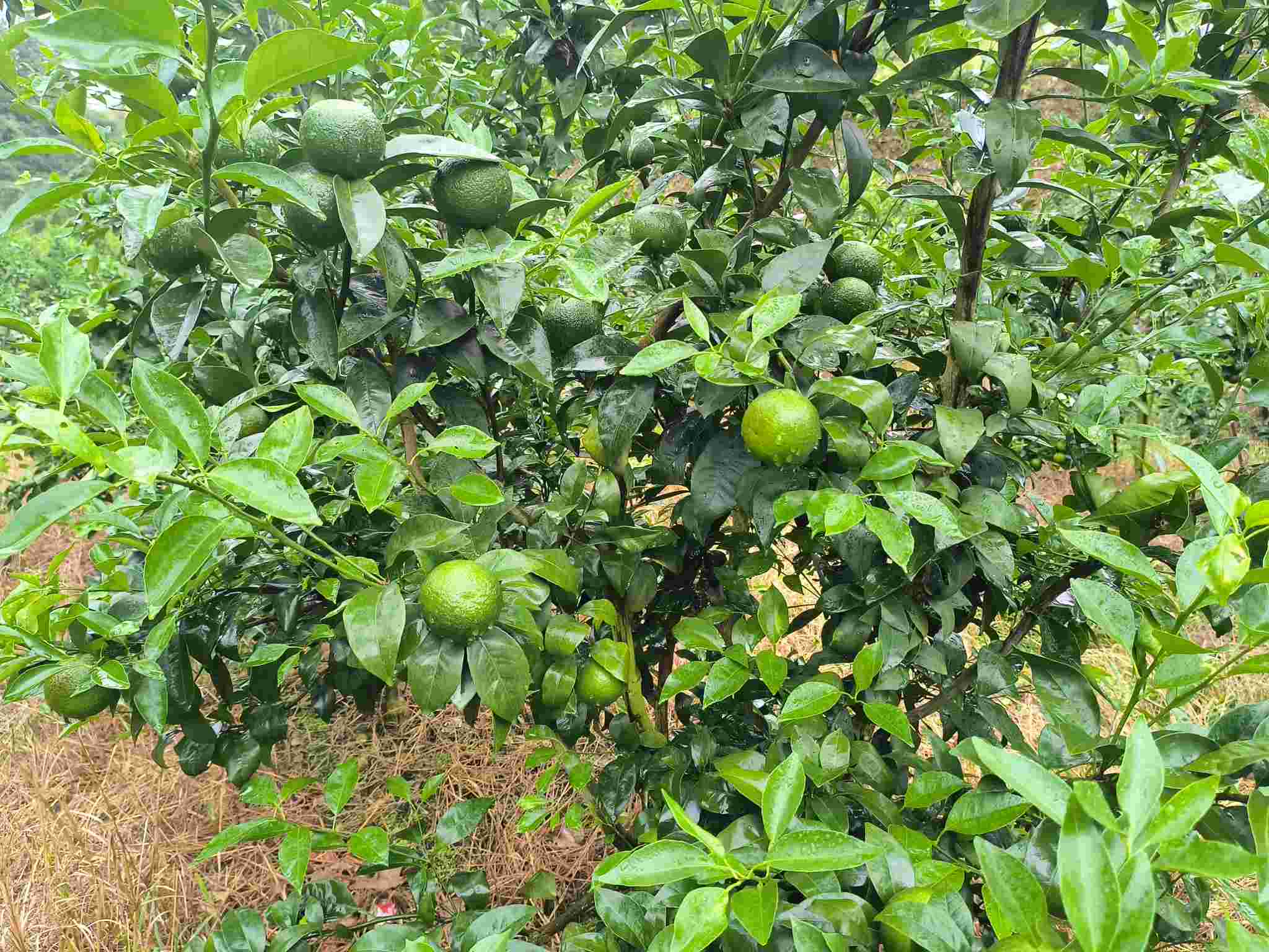 農場道路右側有大批無核柑橘種植,蔡總為同學們介紹其種植及栽培技術、成本開銷、成品質量,并與左側幾棵有核柑橘做對比,指出種植無核柑橘的難度及本身優勢,表明自己會堅持種植、發揚無核柑橘的決心,同學們為之欽佩。