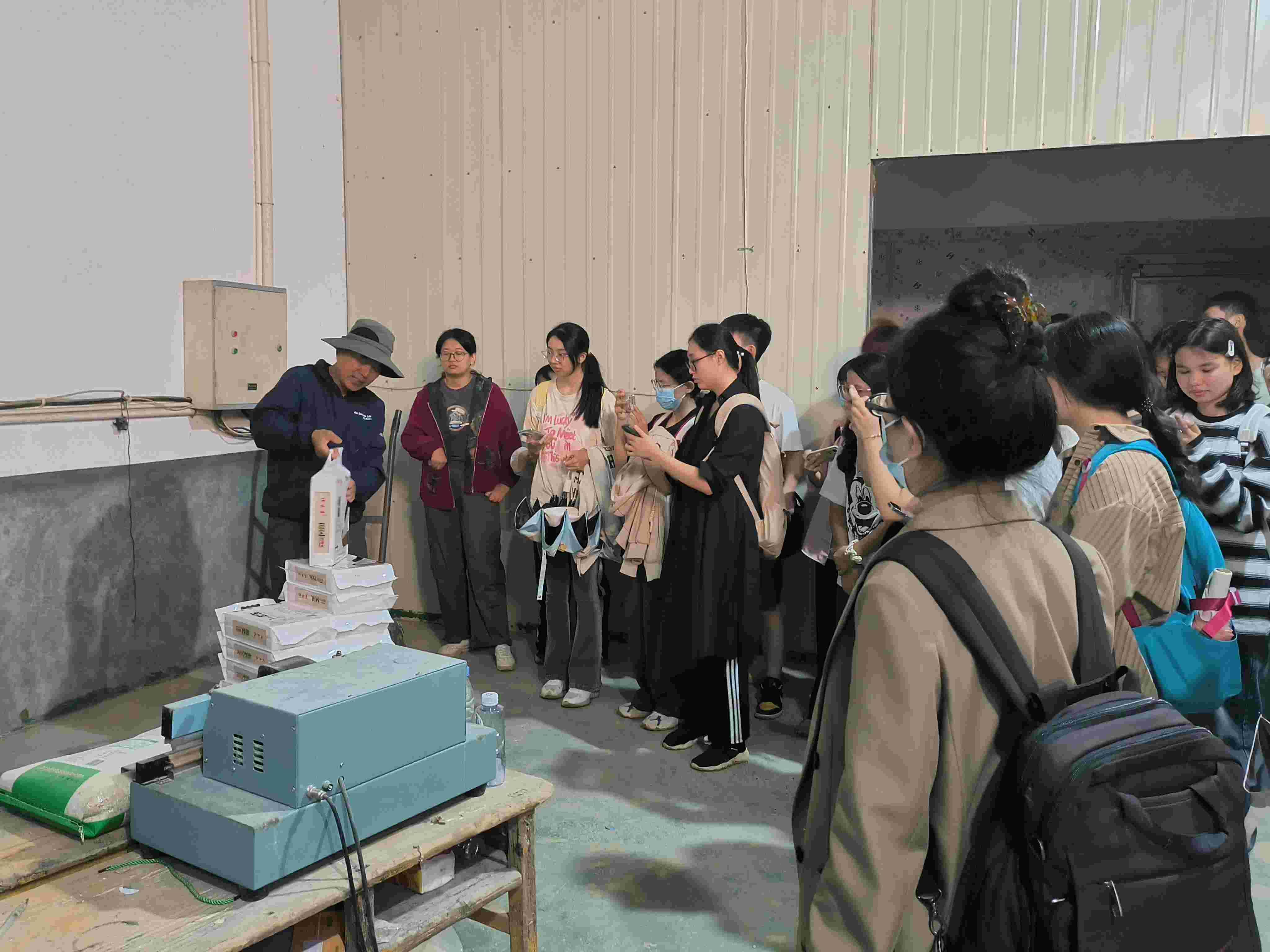 隨后同學們跟隨蔡總來到水稻一體化流程廠房,從一顆種子到一粒大米。蔡總詳細地向同學們介紹每臺機器的具體作用,大致操作流程及過程的實現。同學們領悟到現代農業農耕文明的飛速發展,并以此作基礎展開思考,科技日新月異地發展在農業上的應用促進了農民經濟收入來源,間接促進農村經濟的發展。
