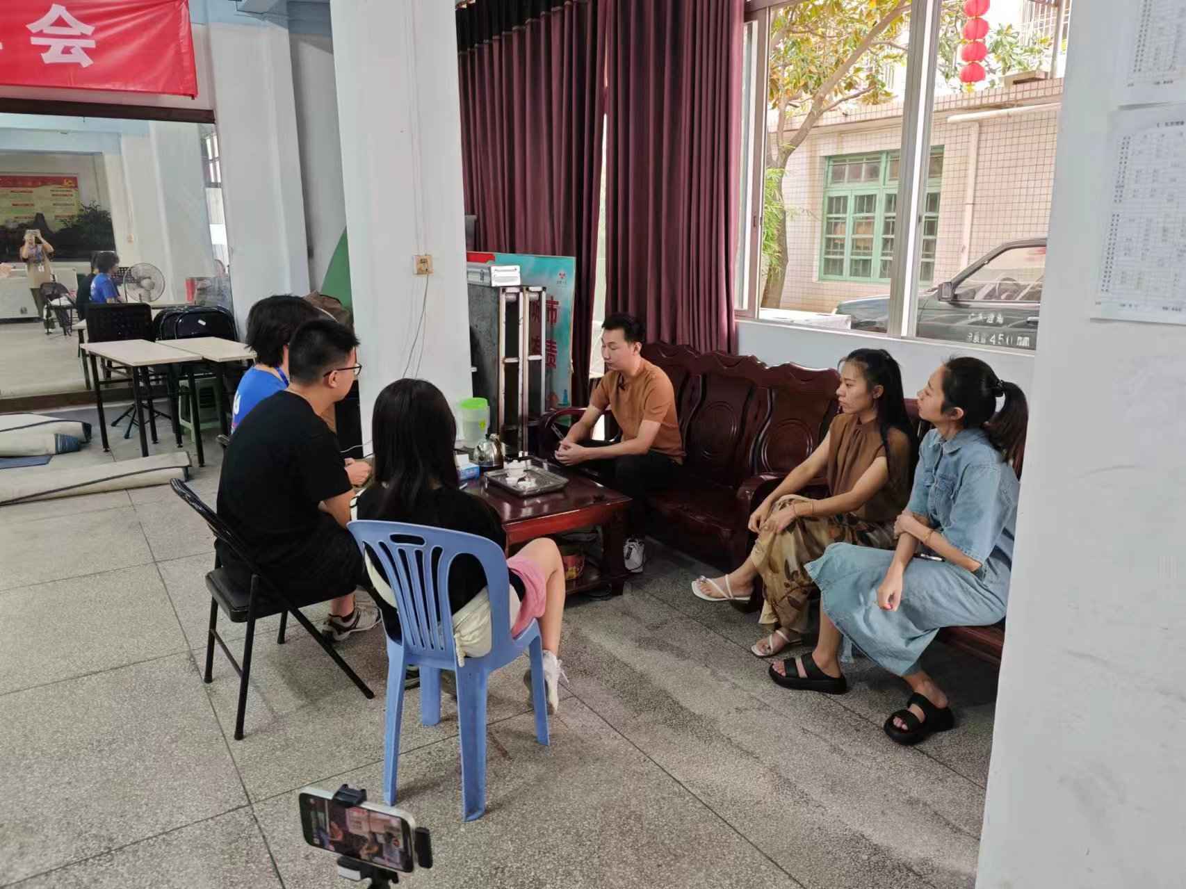 參觀結束后,潮匯小隊的趙燁琳同學開始進行對陳旸旸老師進行采訪,從多個角度進行提問,陳老師用一口質樸的潮汕話與趙燁琳同學進行對談,在對談過程中,隊員們感受到陳老師對蜈蚣舞的滿腔熱血與熱愛,以及對蜈蚣舞的未來充滿了希望。