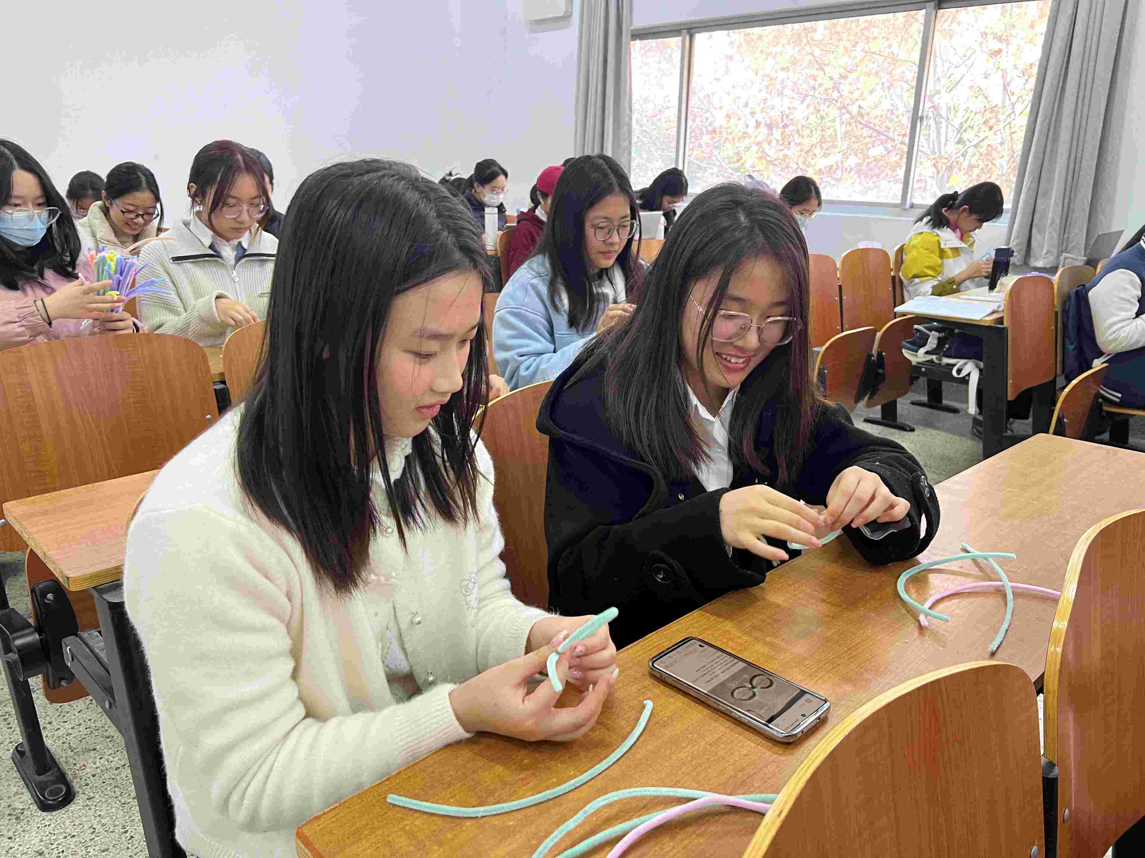 活動伊始,劉雨萱播放了一段視頻。視頻中的主人公彎腰撿起地上的一枚符咒,抬起頭后眼前出現(xiàn)了《成龍歷險記》動畫片中各個角色的身影。隨后,劉雨萱總結(jié),兒童電視是給小孩做夢的床,給小孩遠(yuǎn)眺的窗。是電視這扇窗讓童年時的我們的理想有了形狀。然后,她向同學(xué)們介紹了國際兒童廣播電視日。國際兒童電視廣播日由聯(lián)合國兒童基金設(shè)立,時間是每年12月的第二個星期日。它設(shè)立的宗旨是希望世界各地的傳媒機構(gòu)能于節(jié)日當(dāng)天制作一些以兒童為主的電視或電臺節(jié)目,借此能喚起人們對兒童的關(guān)懷和關(guān)注。劉雨萱表示,在我們童年時期,也有很多專門為兒童設(shè)計的電視臺和節(jié)目,這些我們小時候癡迷的東西,似乎現(xiàn)在也不值得一提了。接著,她組織同學(xué)們進行擊鼓傳花的小游戲,被傳到話筒的同學(xué)需要上臺分享自己小時候印象最深刻或最喜歡的一部動畫片或人物。劉雨萱從自己開始,向大家分享了她最喜歡的動畫片《星游記》。隨后,同學(xué)們依次分享了《豬豬俠》、《熊出沒》、《喜羊羊與灰太狼》等動畫。接下來,劉雨萱帶領(lǐng)同學(xué)們回到當(dāng)下,看看現(xiàn)在的孩子是什么樣的。她表示,最近,10后孩子都有了一個共同的名字——子涵。她向同學(xué)們簡單介紹“我家子涵怎么了”的熱點事件,并組織大家對身為未來的教師如何更好地進行家校溝通進行討論。在經(jīng)歷一番激烈的討論后,劉雨萱總結(jié)到,教育并非將水桶裝滿,而是點燃微暗的火。“我家子涵怎么了”爆火的背后,我們希望家長對孩子的愛能夠回歸到孩子本身,我們期待更多自我空間被探索,更多的關(guān)懷能夠在適度的邊界內(nèi)安放。在接下來的實踐活動部分,劉雨萱組織同學(xué)們進行扭扭棒制作和撰寫明信片寄語。她表示,這些作品和寄語將在周末被帶去班級志愿基地,送給社區(qū)的孩子和家長們,讓童心傳遞下去。至此,本次實踐活動圓滿結(jié)束。