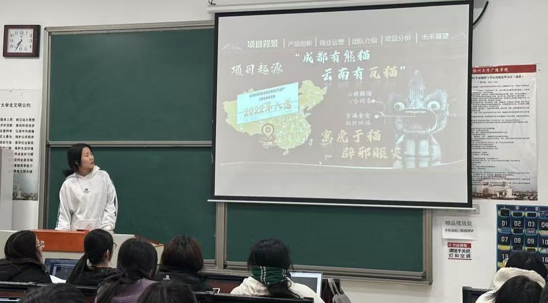 揚(yáng)州大學(xué)廣陵學(xué)院,2024年11月26訊(通訊員:李佳蕊顧欣蘭)2024年11月20-25日期間,為深入傳播云南瓦貓對(duì)云南地區(qū)區(qū)域文 化,提升文化自信的積極作用,深入感悟中國傳統(tǒng)鎮(zhèn)宅文化對(duì)于民族文化的豐富內(nèi)涵和當(dāng)代價(jià)值,為對(duì)中國云南傳統(tǒng)非物質(zhì)文化遺產(chǎn)“瓦貓”進(jìn)行創(chuàng)造性轉(zhuǎn)化,創(chuàng)新性發(fā)展,推進(jìn)線上線下一體化同步推廣,揚(yáng)州大學(xué)廣陵學(xué)院的學(xué)子在指導(dǎo)老師鄒玖春的帶領(lǐng)下,開展了為期五天的班級(jí)民族文化路演宣講活動(dòng)。