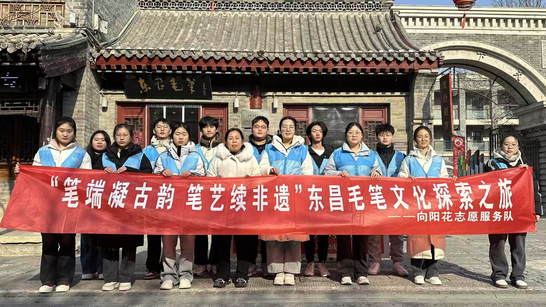 東昌毛筆,歷史悠久,制作工藝極為嚴謹,素有“萬千毛中選一毫”之說。其含墨量多而不滴,行筆流暢而不滯。2013年5月8日,山東省人民政府印發《山東省人民政府關于公布第三批省級非物質文化遺產名錄和省級非物質文化遺產擴展項目名錄的通知(魯政字〔2013〕90號)》,東昌毛筆制作技藝被列入山東省第三批省級非物質文化遺產名錄。為積極響應國家保護非物質文化遺產的號召,傳承和弘揚中華優秀傳統文化,促進群眾對傳承毛筆文化的重視與參與,1月10日聊城大學化學化工學院向陽花志愿服務隊于聊城市東昌府區東昌手工毛筆非遺體驗店開展了“筆端凝古韻,筆藝續非遺”東昌毛筆文化志愿服務活動。
