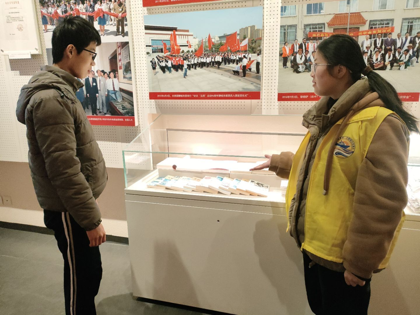 隊員們駐足在每一塊展板前,向游客們介紹了孔繁森同志生平事跡。孔繁森在西藏工作時所穿的舊棉襖、密密麻麻記錄著藏區的民生狀況、發展規劃以及他對工作的思考與感悟的泛黃筆記本、寫給家人的家書……從他在艱苦的西藏地區兩次義無反顧地投身建設,到把自己的工資、獎金慷慨地分給藏族同胞,甚至在家庭面臨重重困難時,他依然選擇堅守崗位,為了藏區人民的幸福生活默默付出一切。