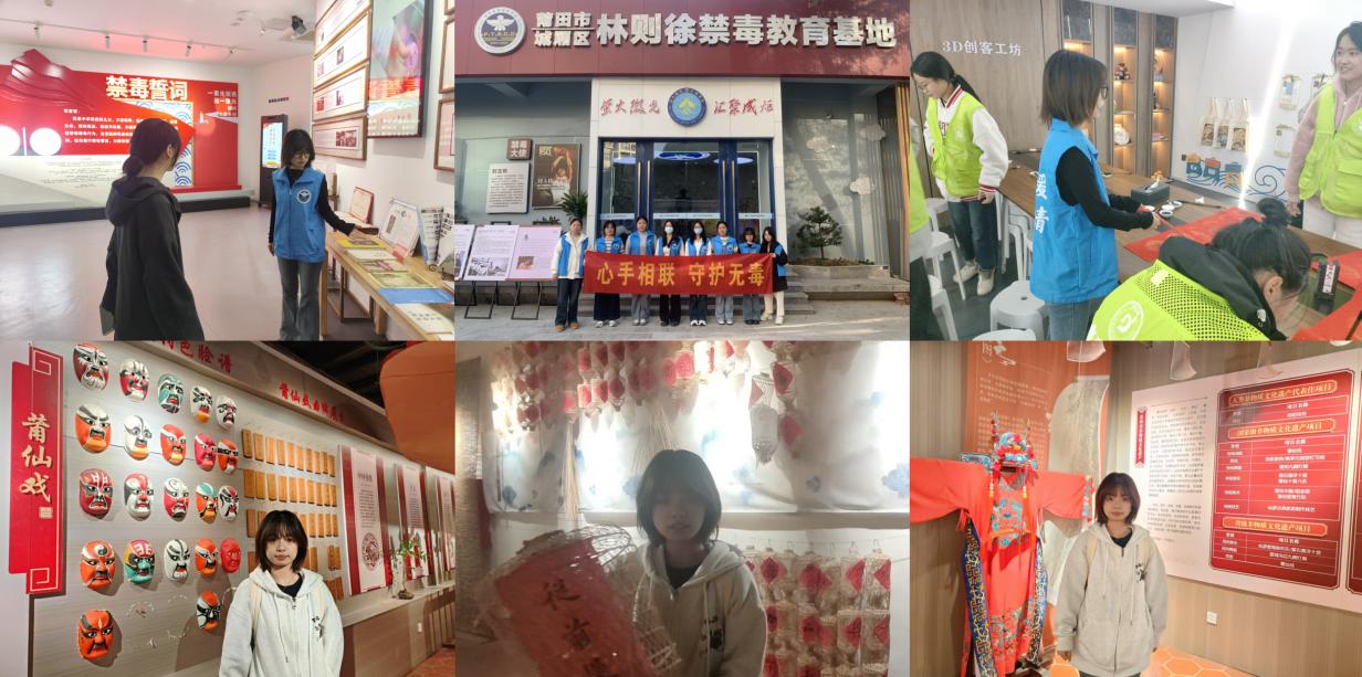 寒假期間,團隊成員前往莆田市非遺藝術中心,深入調研了莆田十音八樂、古法燈籠、莆仙戲等非遺項目,深刻認識到了非遺文化傳承和保護的重要性。為進一步挖掘莆田非遺文化的故事與內涵,團隊成員追隨林則徐先輩的步伐,參與到由莆田市林則徐禁毒教育基地開展的“媽祖愛,禁毒情”志愿宣傳服務中,將非遺文化與禁毒教育相結合為社會創造青春價值。