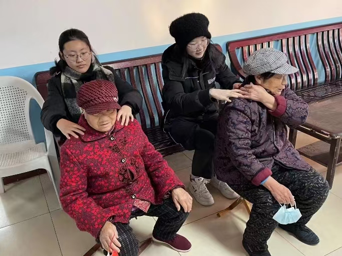 接下來幾天里實踐團成員考慮養老院中許多老人行動不便,實踐團成員們輕柔的為老人按摩,緩解老人的疲憊,讓老人們愜意放松,享受這寧靜時刻。