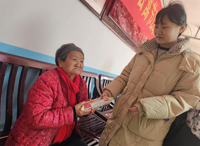 實踐團還精心準備了禮物分發給老人。一份份禮物承載著成員們的關愛,老人們接過禮物,臉上洋溢著幸福的笑容。