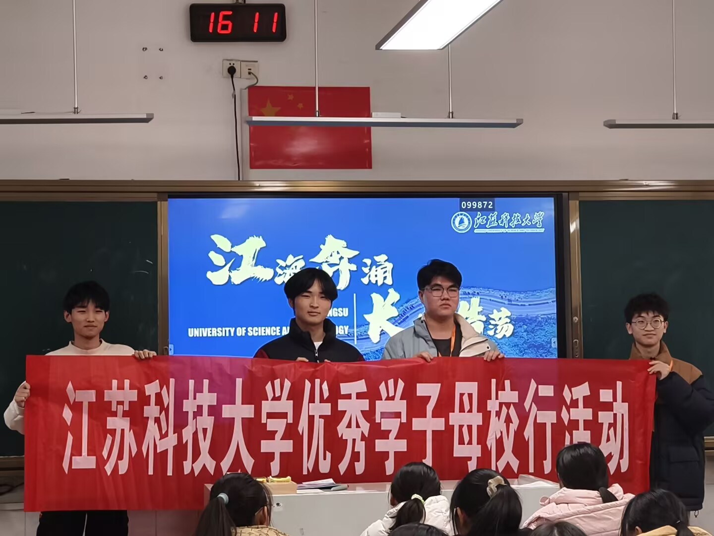 為赴母校敘舊情,傳遞所學(xué),引領(lǐng)學(xué)弟學(xué)妹航向未來,2025年1月19日,江蘇科技大學(xué)大一學(xué)子王思遠(yuǎn),袁志誠和楊雨潤組成團(tuán)隊(duì)回到高中母校江蘇省口岸中學(xué),開展了宣講實(shí)踐活動(dòng)。