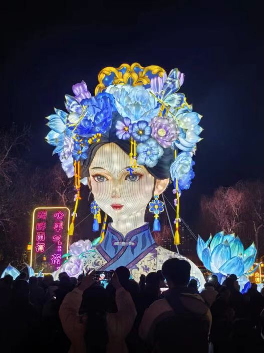 【圖為濟南大明湖畔的夏雨荷花燈】