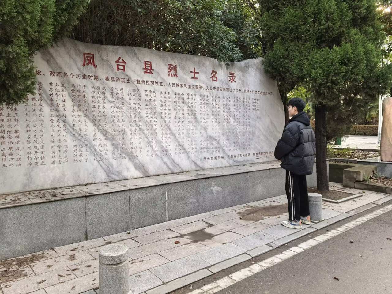 ( 圖為實(shí)踐隊(duì)員瞻仰鳳臺(tái)縣烈士名錄 通訊員 王博朝 攝) 隨后,實(shí)踐隊(duì)員們在講解員的帶領(lǐng)下參觀了烈士陵園的革命英烈墓志、革命歷史展館等設(shè)施。館內(nèi)陳列著大量珍貴的歷史遺物,那些泛黃的照片、破舊的衣物、生銹的武器,無不訴說著過去的艱苦歲月。透過這些實(shí)物,實(shí)踐隊(duì)員們仿佛穿越時(shí)空,回到了那個(gè)硝煙彌漫的時(shí)代。看到了先烈們在簡陋的條件下,依然堅(jiān)定地為理想而奮斗;感受到了他們在面對(duì)敵人的殘酷迫害時(shí),毫不退縮的大無畏精神。其中有一位烈士的事跡讓實(shí)踐隊(duì)員們印象尤為深刻,他在戰(zhàn)斗中身負(fù)重傷,但仍然憑借著頑強(qiáng)的意志,堅(jiān)持與敵人抗?fàn)帲罱K壯烈犧牲。他的英勇事跡讓我深刻體會(huì)到了什么是真正的堅(jiān)韌和不屈,也讓實(shí)踐隊(duì)員們明白了今天的幸福生活是多么來之不易。不僅如此,實(shí)踐隊(duì)員們還看到了江澤民主席的題言,他說:“革命先烈,永垂青史。”使實(shí)踐隊(duì)員們深深體會(huì)到了國家領(lǐng)導(dǎo)人對(duì)革命先烈的敬仰與掛念,心中不免感到一陣溫暖,也回答了到底誰才是中國最可愛的人,就是我們英勇無畏的中國革命先烈們。