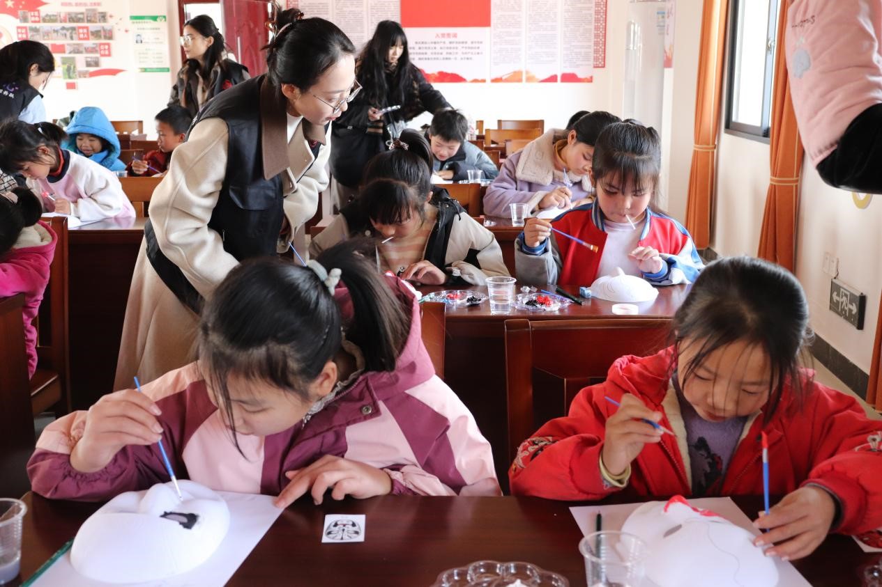 實踐隊員與學生臉譜作品合影“藝筑童心”實踐團隊以寒假社會實踐為契機,充分發揮藝術與教育學等專業優勢,聚焦鄉村美育和文化振興等國家戰略與地方教育需求,開展美術教育實踐活動,帶領兒童感受美、發現美、創造美,以藝術賦能鄉村美育發展,助力鄉村振興。