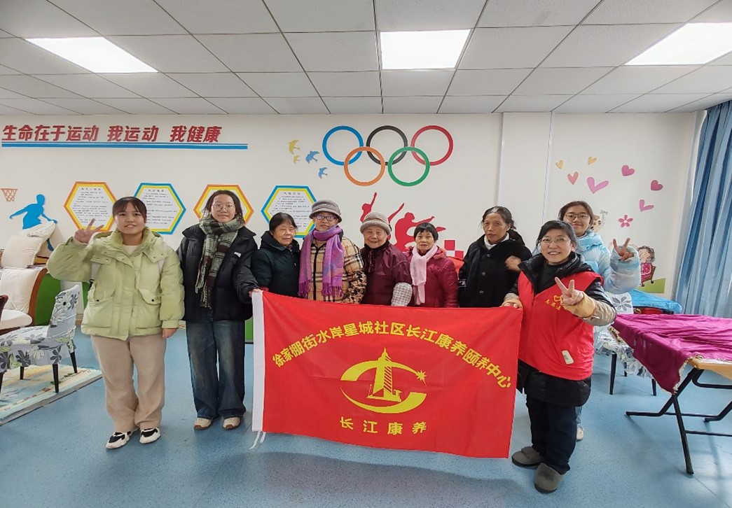 團隊成員在養老服務中心與負責人合照 丁雯昱攝