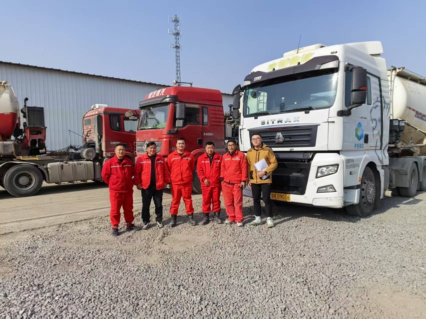 活動籌備階段,團隊成員高瑞浦提前在網上查閱重載物流卡車的基本構造、常見類型、運輸原理等基礎知識。為了加深對物流運輸工具的認識和了解,高瑞浦提前與企業負責人交流,在針對了解公司相關的安全規定和允許拍照區域后,對重載物流運載車,物流罐式掛車進行了參觀。
