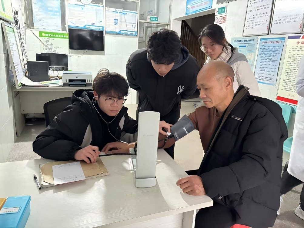 義診服務送溫暖,健康守護踐初心在感受非遺文化魅力的同時,實踐隊員們也積極發揮專業特長,為當地村民送去健康關懷。在福州感恩村,隊員們分工協作,耐心地為村民們測量血壓。針對部分血壓偏高的村民,隊員們還細心詢問了他們的生活習慣,提出了飲食調整、適量運動等建議。