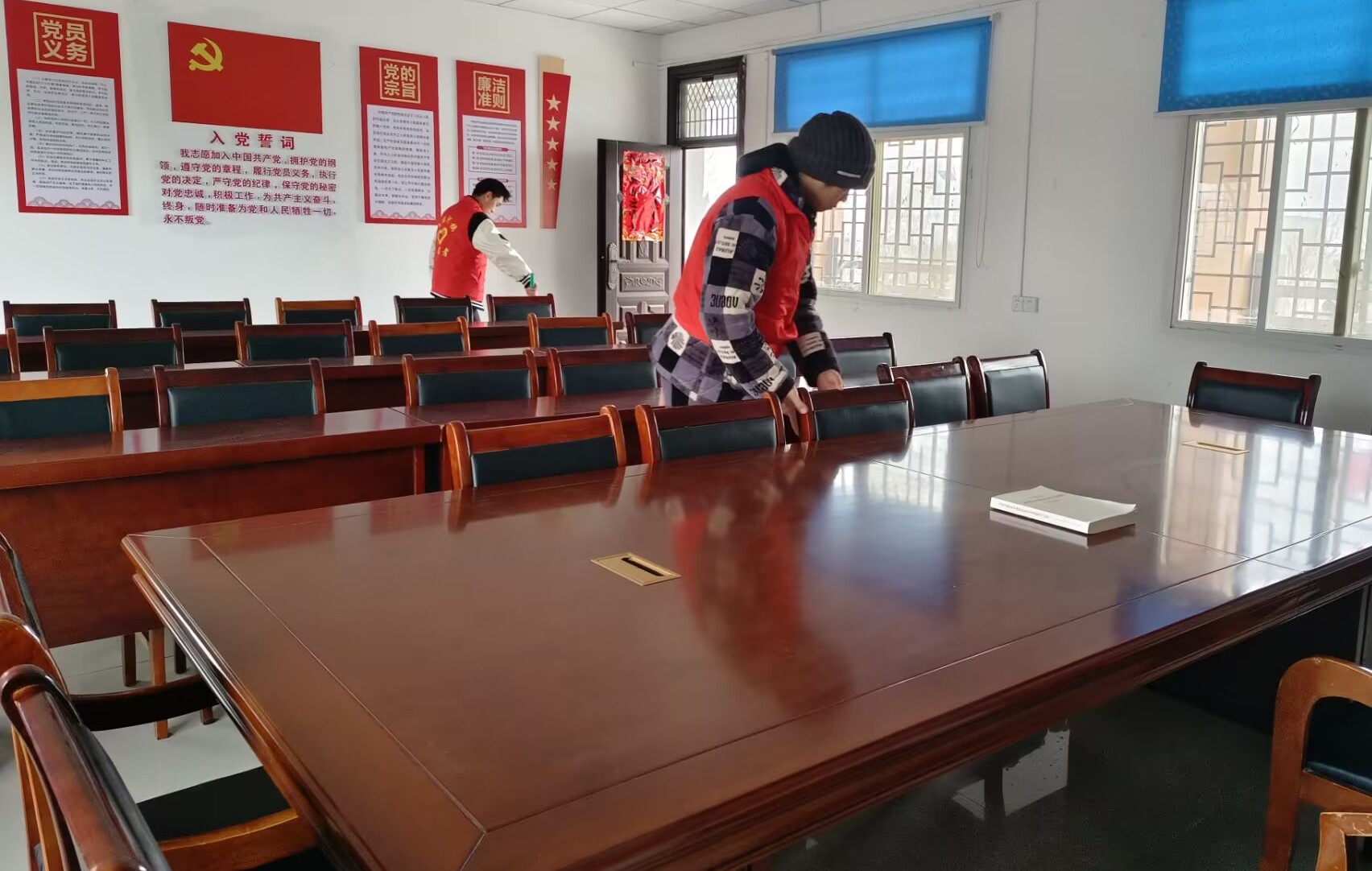 在村委會(huì)工作人員的引導(dǎo)下,隊(duì)員們迅速投入到緊張而有序的志愿打掃工作中。他們分工明確,有的拿起掃帚清掃地面,將角落里的灰塵和雜物清理干凈;有的拿起抹布擦拭辦公桌椅、門窗和文件柜,讓每一個(gè)角落都煥然一新;還有的負(fù)責(zé)整理會(huì)議室,擺放桌椅,為村民們的會(huì)議和活動(dòng)提供整潔的環(huán)境。