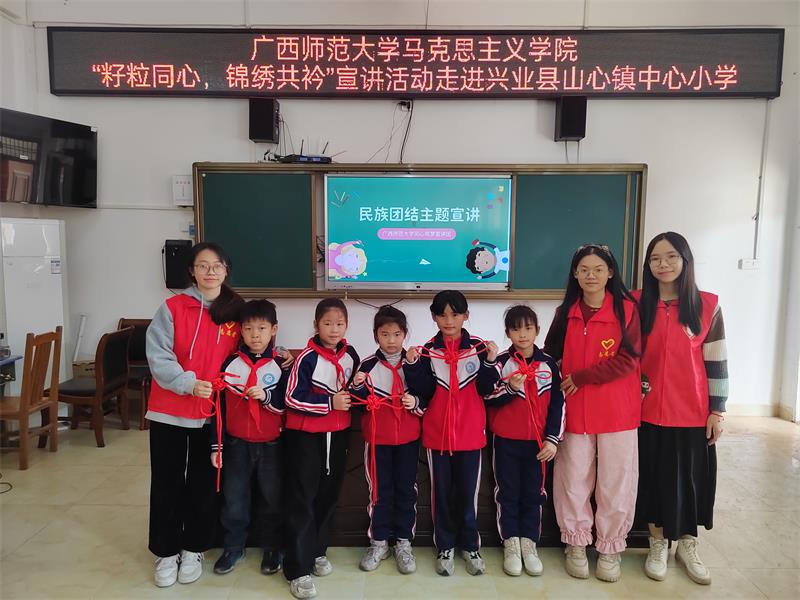 為進一步加強民族團結教育,弘揚中華優秀傳統文化,1月17號早上,廣西師范大學馬克思主義學院同心筑夢“青言青語”理論宣講團前往山心鎮中心小學開展“民族團結種子計劃”校園宣講活動,在活動中帶領學生們通過感悟優秀傳統文化的魅力,以文化傳承增強民族認同感。
