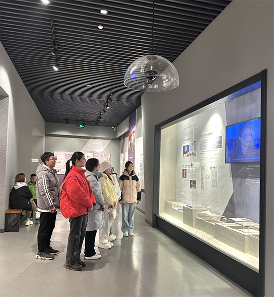 1月17日,實(shí)踐團(tuán)隊(duì)探訪張純?nèi)缂o(jì)念館。團(tuán)隊(duì)首先在館內(nèi)工作人員引導(dǎo)下,觀察了館內(nèi)陳列的珍貴照片、文獻(xiàn)資料及實(shí)物展品。隨后,隊(duì)長(zhǎng)趙妍依照張純?nèi)缗咳松壽E,引領(lǐng)隊(duì)員依次參觀場(chǎng)館。隊(duì)員們從館內(nèi)石像處開(kāi)啟參觀之旅,他們先在張女士雕塑前默哀數(shù)分鐘,然后來(lái)到“大洋彼岸的父母之邦”展廳。該展廳展示了張純?nèi)绲募彝ケ尘昂统砷L(zhǎng)環(huán)境,她的外公是著名的詩(shī)人和作家,父母皆為哈佛大學(xué)高材生,生活在這樣的大家庭中,張純?nèi)缱杂妆闵钍苤腥A傳統(tǒng)文化的熏陶。