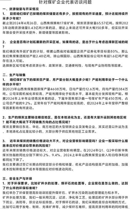 訪談中,企業代表們還分享了他們在應對市場波動、政策變化以及環保要求方面的經驗與策略。他們強調,加強企業間的合作、推動產業協同發展以及積極參與綠色礦山建設,是實現烏海煤炭產業可持續發展的關鍵。這些來自行業一線的聲音,為我們提供了寶貴的實踐參考,也為我們的研究注入了鮮活的現實依據。