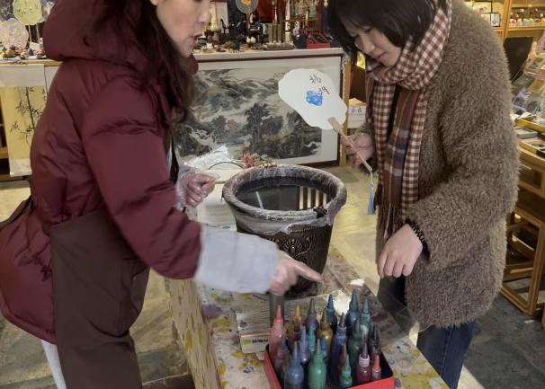 1月31日,小組成員來到非遺文化體驗館,親身體驗了漆扇的制作過程。從扇骨的選材打磨到扇面的髹漆繪制,每一步都讓他們感受到了漆扇制作的獨特魅力和揚州非遺文化的博大精深。