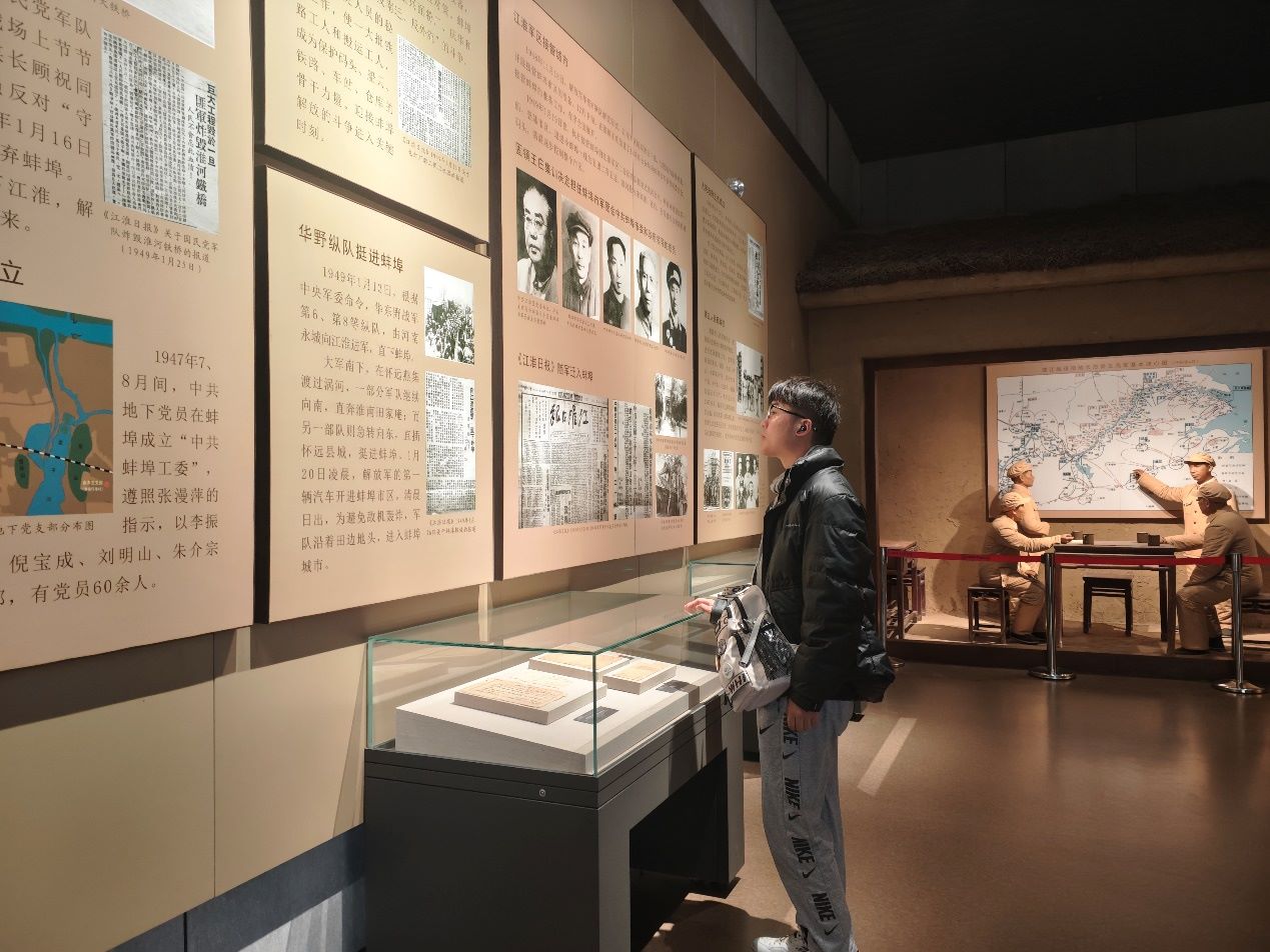 為了深入了解家鄉歷史文化,實踐隊伍決定參觀家鄉的歷史文化博物館。博物館作為一座城市歷史文化的重要載體,承載著過去的記憶,展現著地方獨特的文化魅力,對文化傳承與發展起著關鍵作用。2025年2月7日,曲阜師范大學生命科學學院“尋跡紅脈踐真知,鑄魂社區啟新程”社會實踐隊隊員蔡少文來到蚌埠博物館。蚌埠市博物館,國家一級博物館,位于安徽省蚌埠市蚌山區東海大道市民廣場西側,市政府以南。蚌埠市博物館新館自2015年12月16日正式開放,是一座以展示蚌埠古代歷史、近現代城市發展史以及淮河歷史文化為主題的綜合性博物館。
